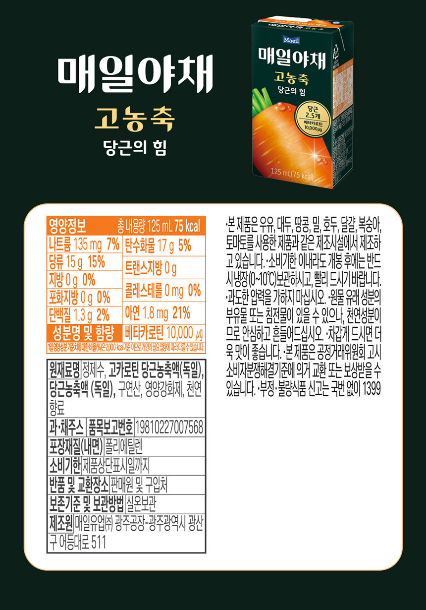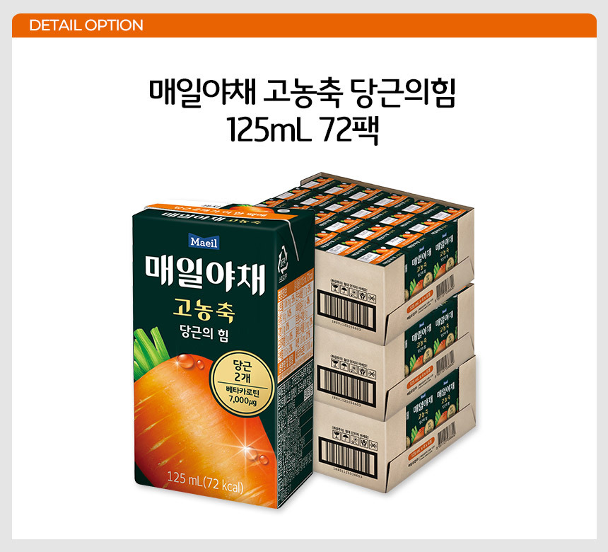 Daily vegetable high concentrated carrot strength 125ml 72 pack / 매일야채 고농축 당근의힘 125mL 72팩