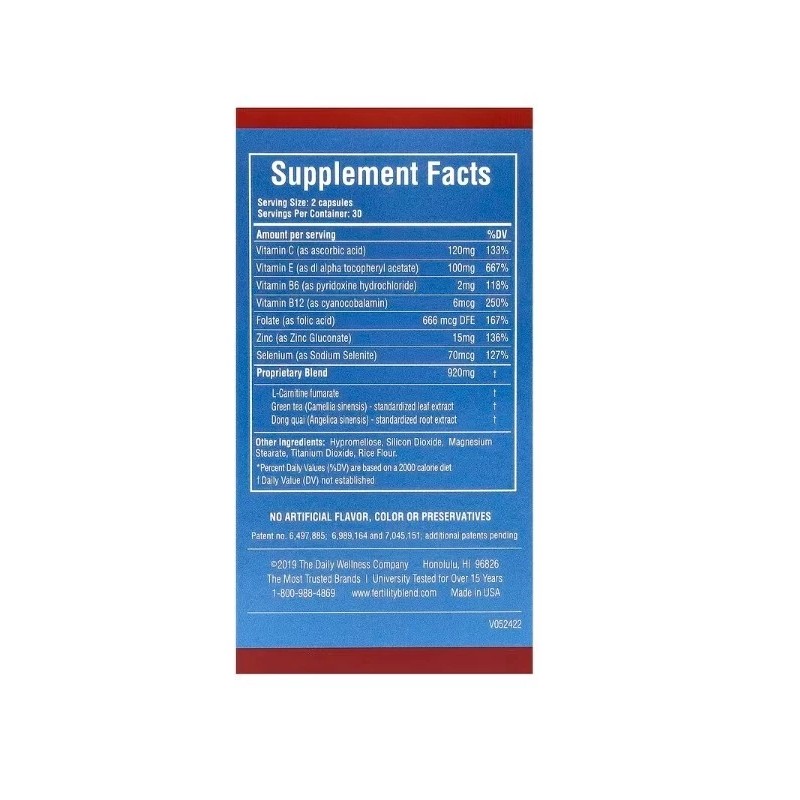 As a dietary supplement, take a total of 2 capsules daily. If desired, you may take 3-4 capsules for the first 1-2 months for faster improvement, followed by continued use of 2 capsules daily. Can be taken as long as needed to help conceive a child. Use for at least three months before expecting significant improvement in fertility. You may also want to have your partner take FertilityBlend® for Women. Female fertility issues are often due to hormonal imbalances or stress factors that decrease the rate of egg release. You may also want to check with a doctor to determine whether there are any physical causes for low fertility that can be corrected by standard medical procedures.