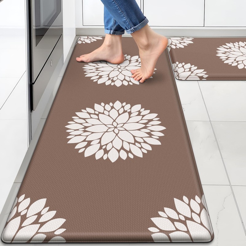 - [Premium Material]: Our kitchen mat is made from high-quality anti-fatigue PVC material. Its surface is water-resistant and it does not fade, and the bottom is anti-slip. It provides cushioned support and is comfortable for anyone who stands for long periods