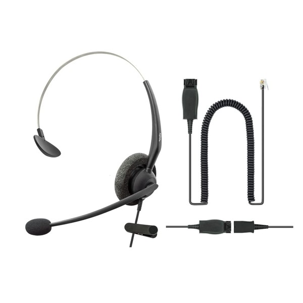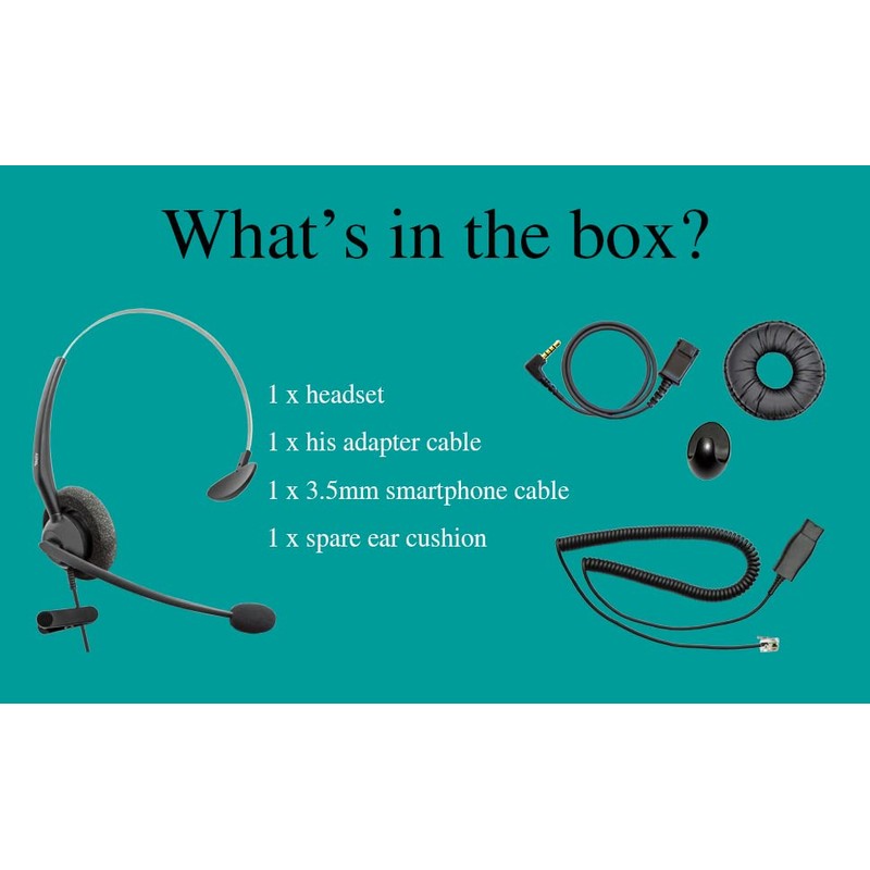 - Se adapta a cualquier tamaño de cabeza, diadema ajustable. Cómodo y fiable. Una almohadilla de repuesto de cuero sintético suave en el paquete. Adaptador HIS de desconexión rápida y conector de auriculares RJ9 en un extremo.