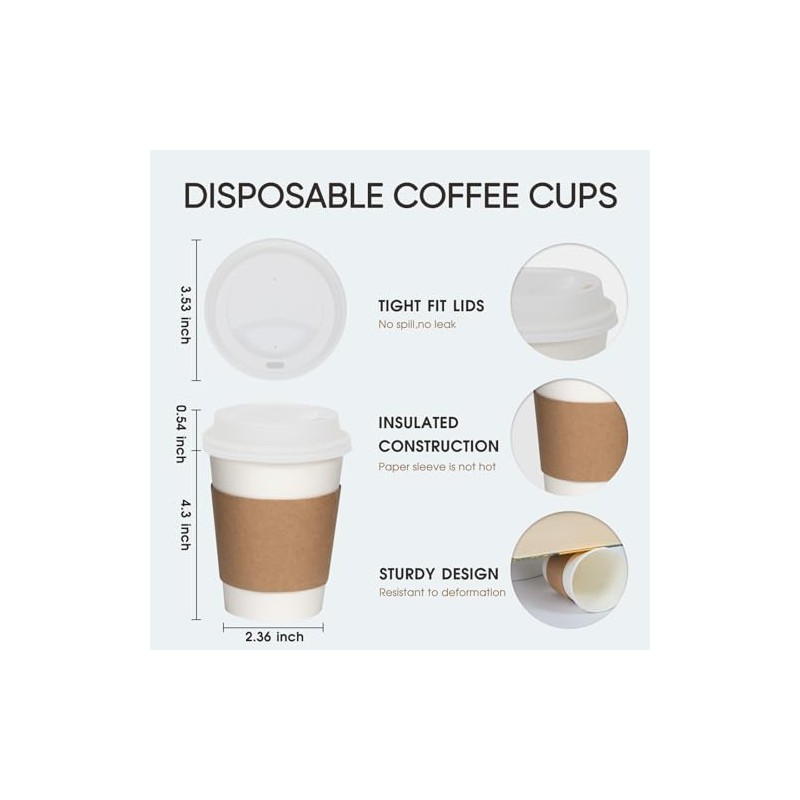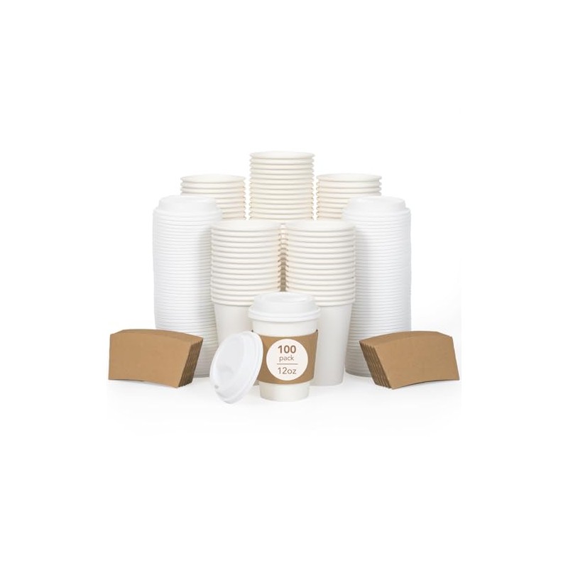 - Value pack of 100 coffee cups, lids and sleeves - everything you need for hot beverages at home, office or events