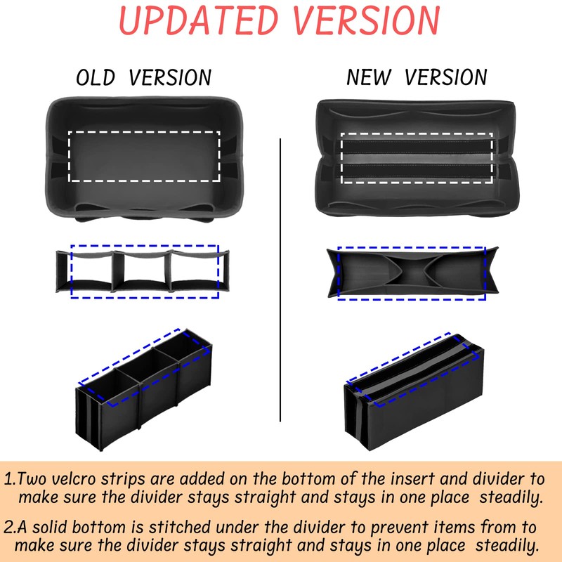 - 【UPDATED TOTE BAG INSERT】As you can see in the product pictures, two long magic straps are added on the bottom of the removeable divider to make sure it will stay straight and stay in place steadily. A solid bottom is stitched under the divider to prevent items from rolling or losing into other section underneath. You can also remove the divider to offer more space if needed, or it can be used as an insert in a small purse if its size is right for your small purse.