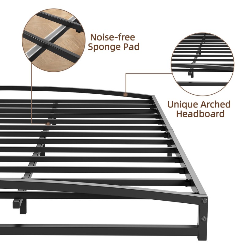 • 【Unique Arch Design】The head and foot of this king bed frame feature a unique arch design that not only enhances aesthetic appeal but also prevents the mattress from sliding. It enables you to maintain a minimalist style without compromising on functionality.