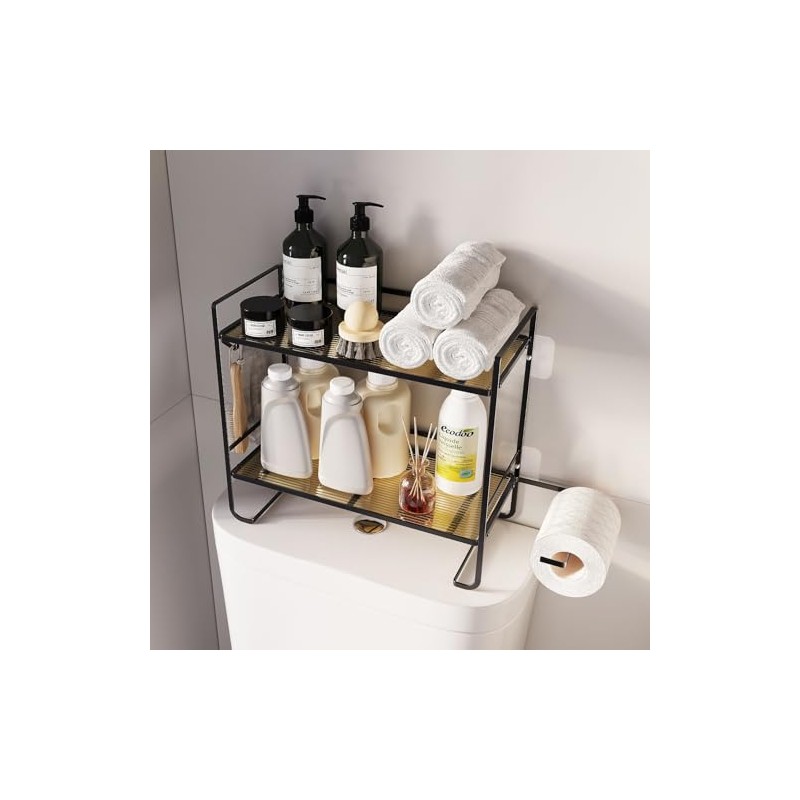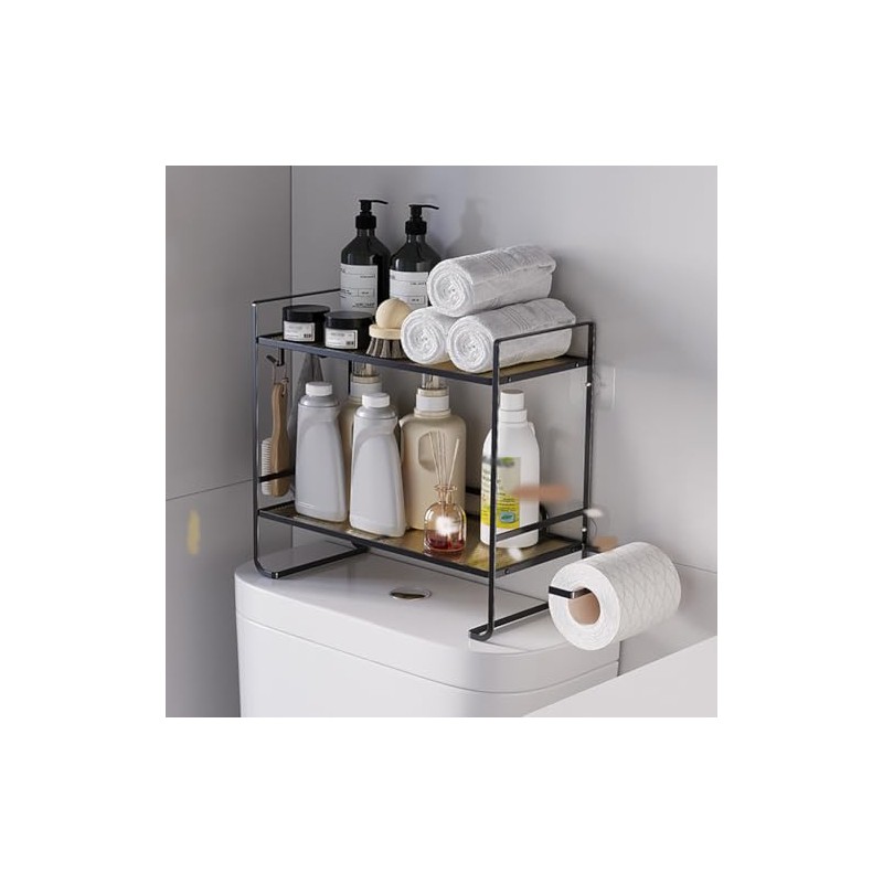 - Versatile Organization Solution: This over-the-toilet 2-tier storage rack conveniently stores all your bathing items and features a toilet paper holder and two hooks, making it ideal for organizing toilet paper, towels, hand soap, and bath balls.