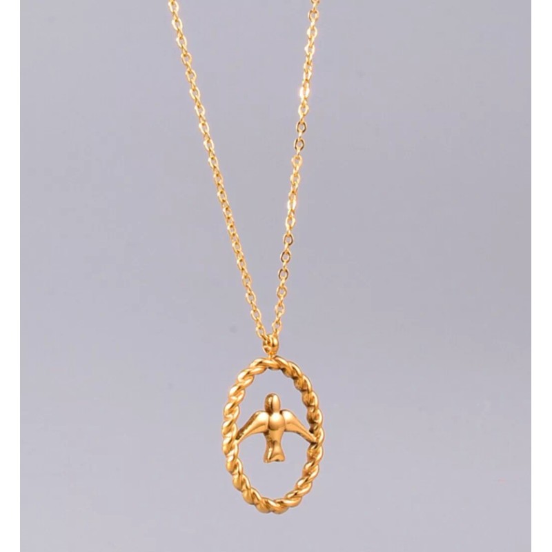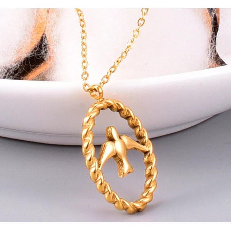 DAINTY Fashion Women Gold Plated Titanium Stainless Steel Gold Bird Necklace 16-17.8"