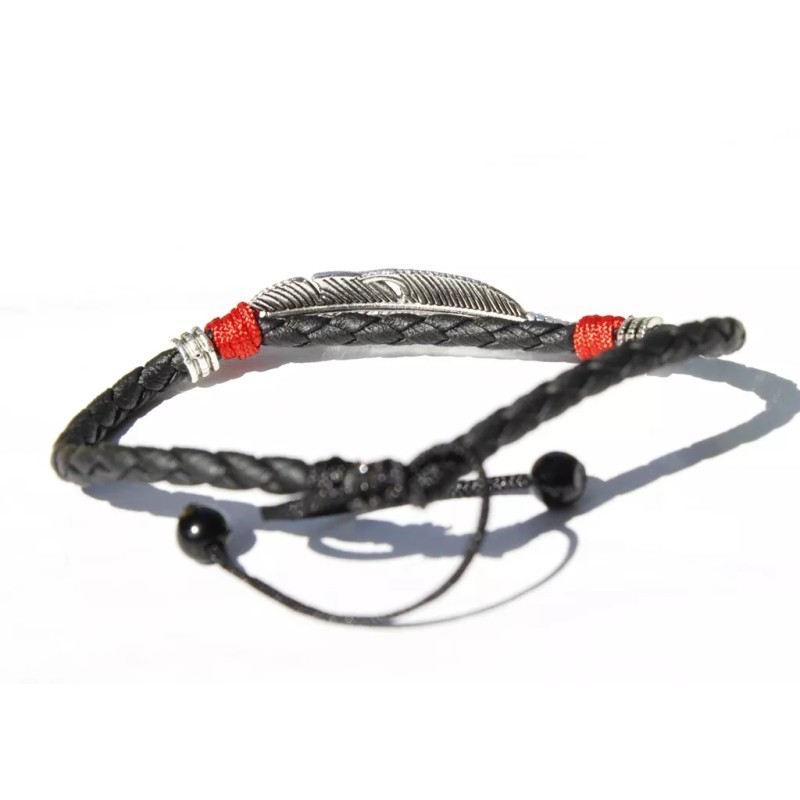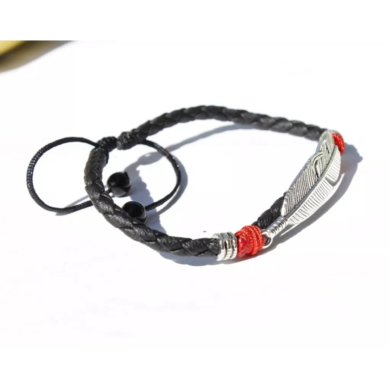 DAINTY Women/ Men Feather / Leaf Red Rope Genuine Leather Anklet Bracelet One Size