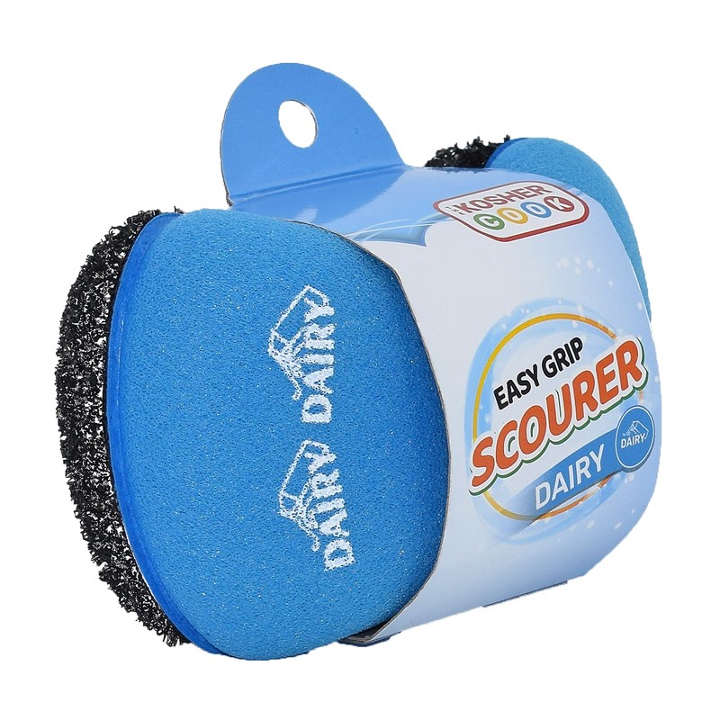 Dairy Blue Scouring Sponge - Easy Grip Handle Scour Pad with Steel Wool – Color Coded Kitchen Tools by The Kosher Cook