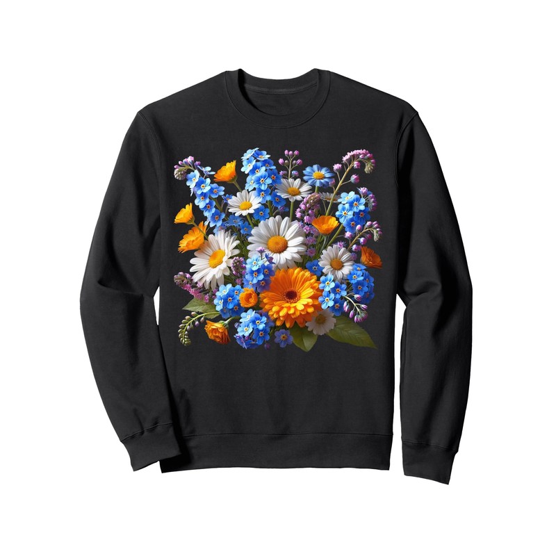 Daisies, Forget-Me-Nots, Marigolds Bouquet Shapes Mania Sweatshirt