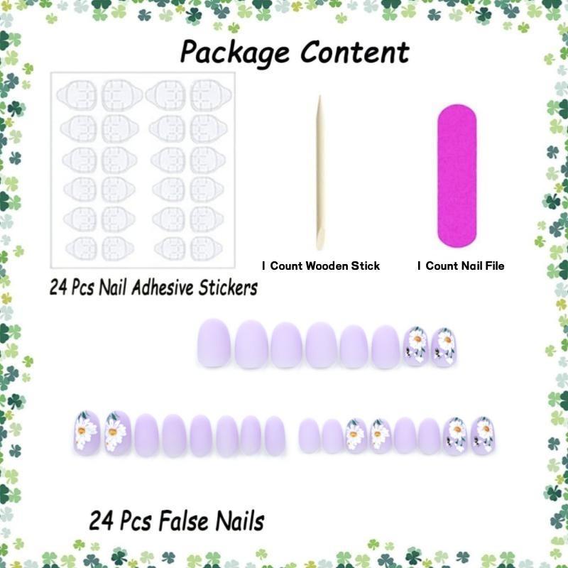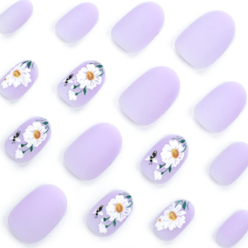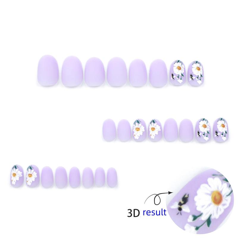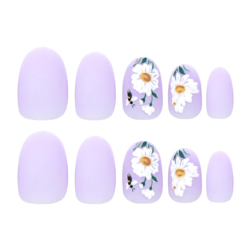 Daisy & Bee Pattern Fake Nail with Nail Art Tools, 24pcs/set Removable Nail Art Artificial Full Cover, Elegant Press on Nail Kit