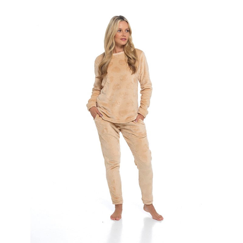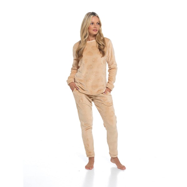 Daisy Dreamer Womens Heart Fleece Pyjamas Super Soft Plush PJs Top & Pants PJ Lounge Set, Champagne Large