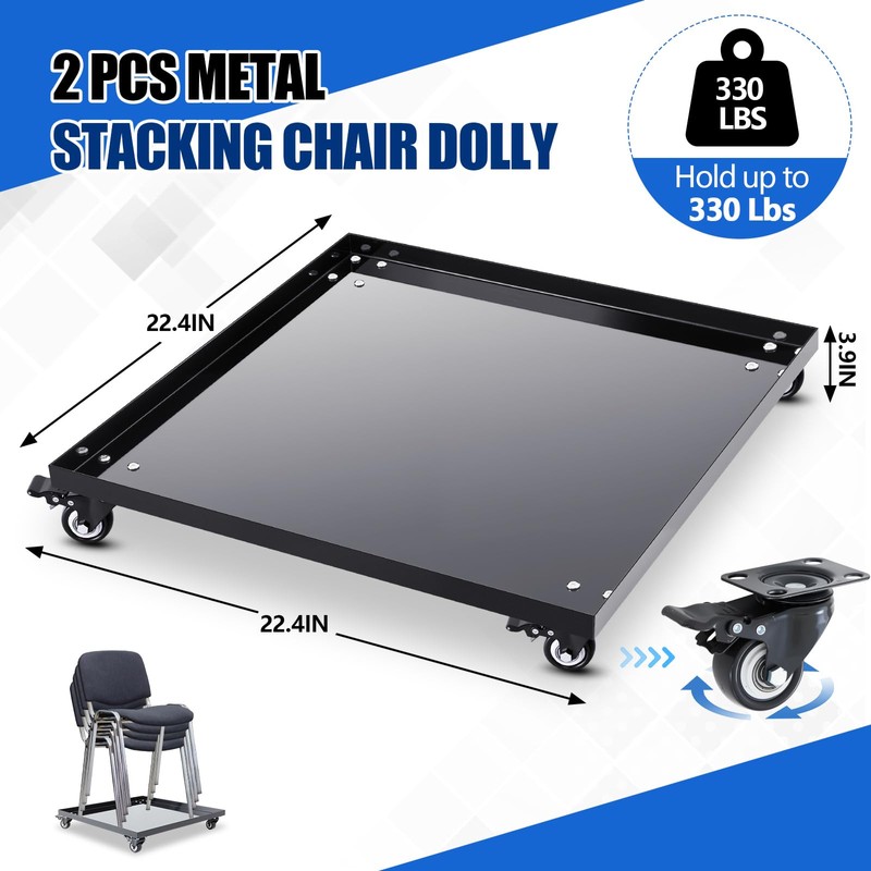 - Double Efficiency: each purchase includes a set of 2 metal stacking chair dollies, making it a practical choice for improved transport efficiency; With this duo, your chair transportation and storage become effortlessly more manageable, minimizing labor while maximizing productivity