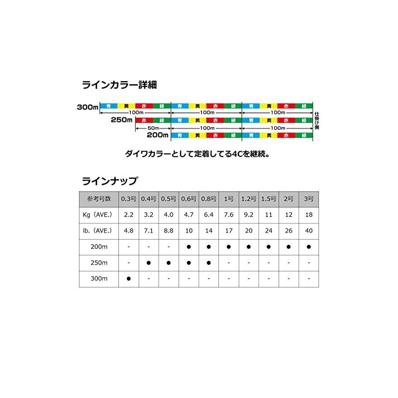 - Muscle PE (high density PE) densely woven (compared to our company), the quality of thread has been significantly improved as high abrasion resistance, improved durability and reduced noise and increased distance