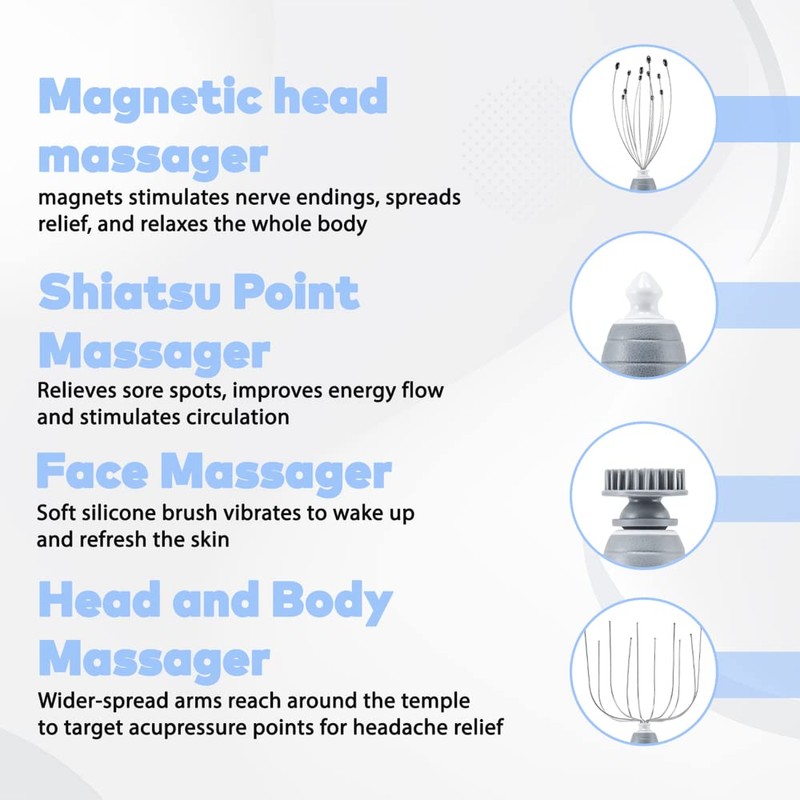 - [Magnetic head massager] Use the magnets on its tips to stimulate nerve endings, spread relief, and relax the whole body.