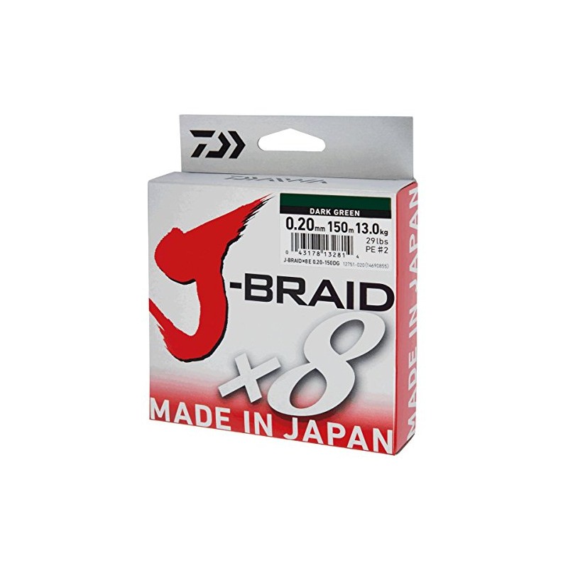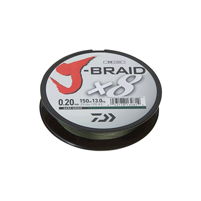 Daiwa J-Braid 8 Braid 0.22mm, 17,0kg/27,5lbs, 150m dark green
