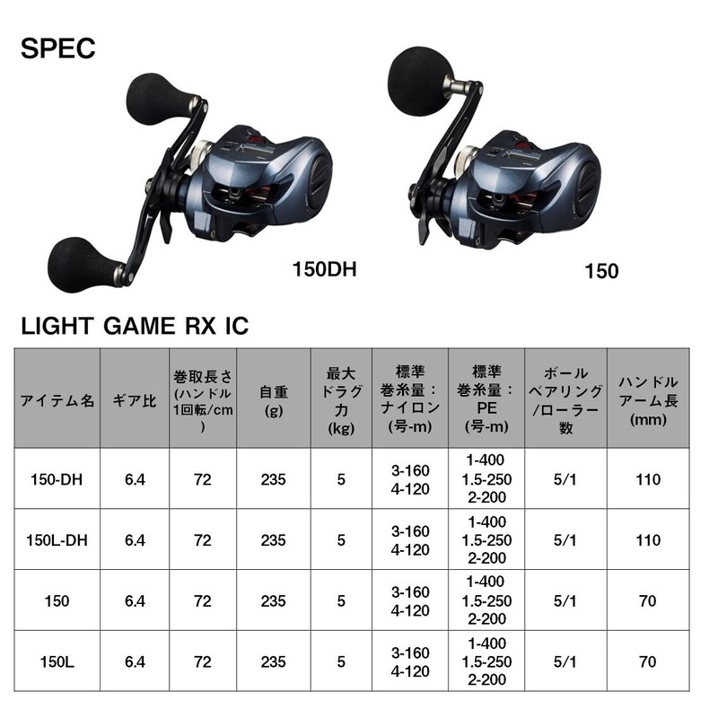 DAIWA Light GAME RX IC 150-DH Bi-Axle Reel with Counter