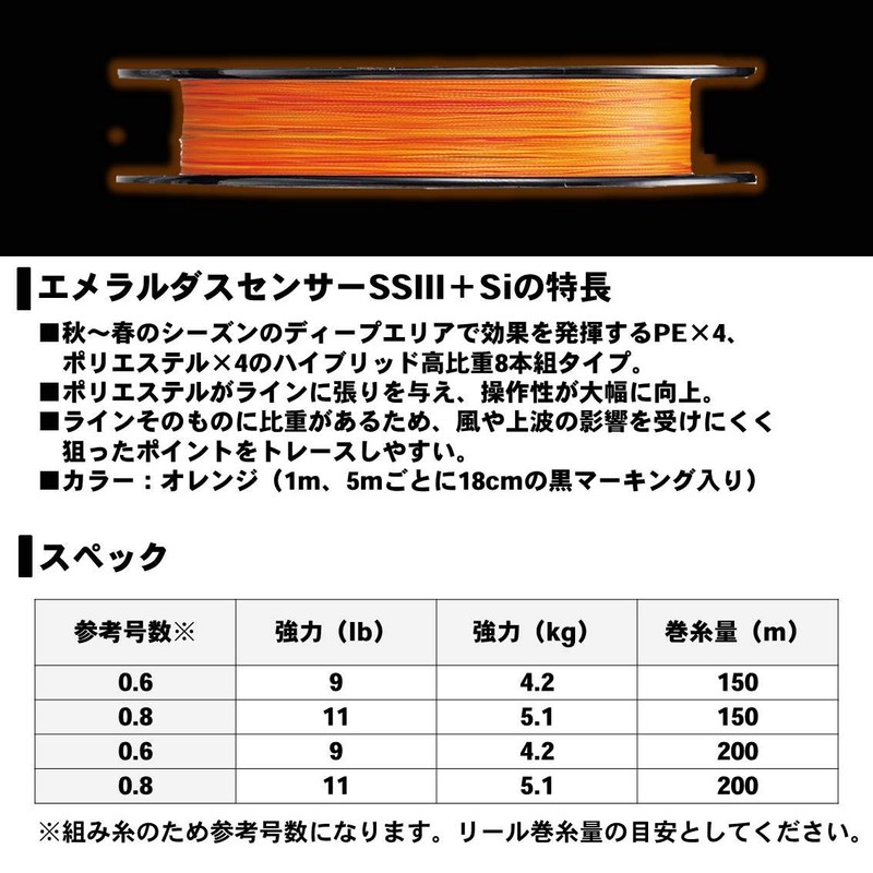 ダイワ(DAIWA) フロロライン エメラルダスSS3+Si 0.8号 150m オレンジ(カラーマーキング付)