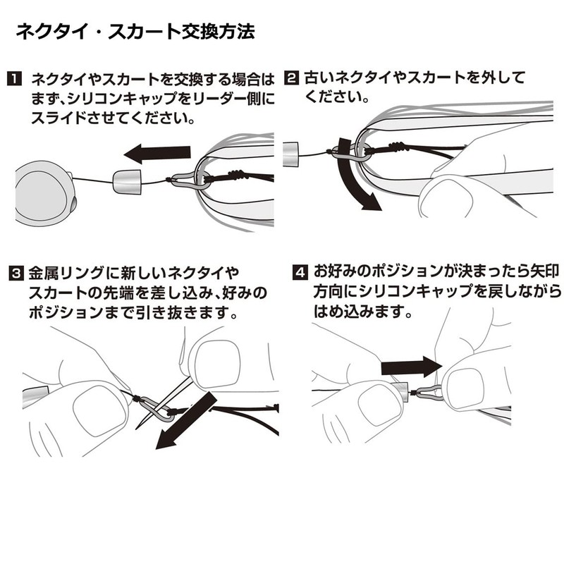 - (New Beta System) The unique shape of the metal ring and silicone cap allow you to fasten your tie or skirt just by pinching. The tie skirt and hook are easy to use, and the overall strength is increased