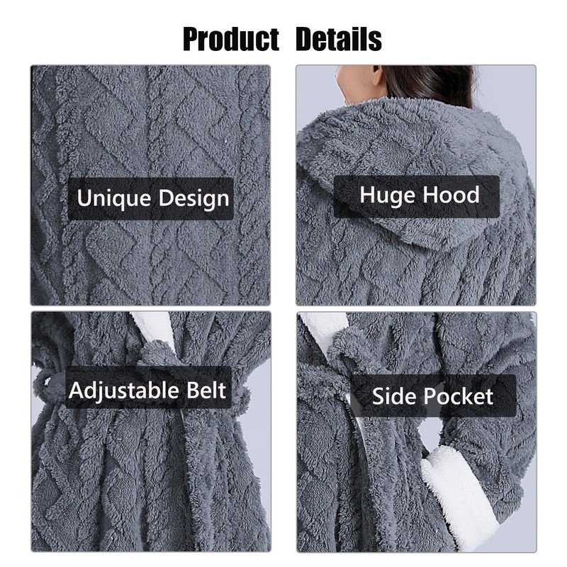 - ★ COZY & ELEGANT: This women's long hooded plush robe is made of premium flannel fleece(300g/㎡),super soft and fluffy, lightweight, skin-friendly, exquisite jacquard, sherpa lining, always keep you warm and comfortable in the cold winter, and look beautiful and elegant