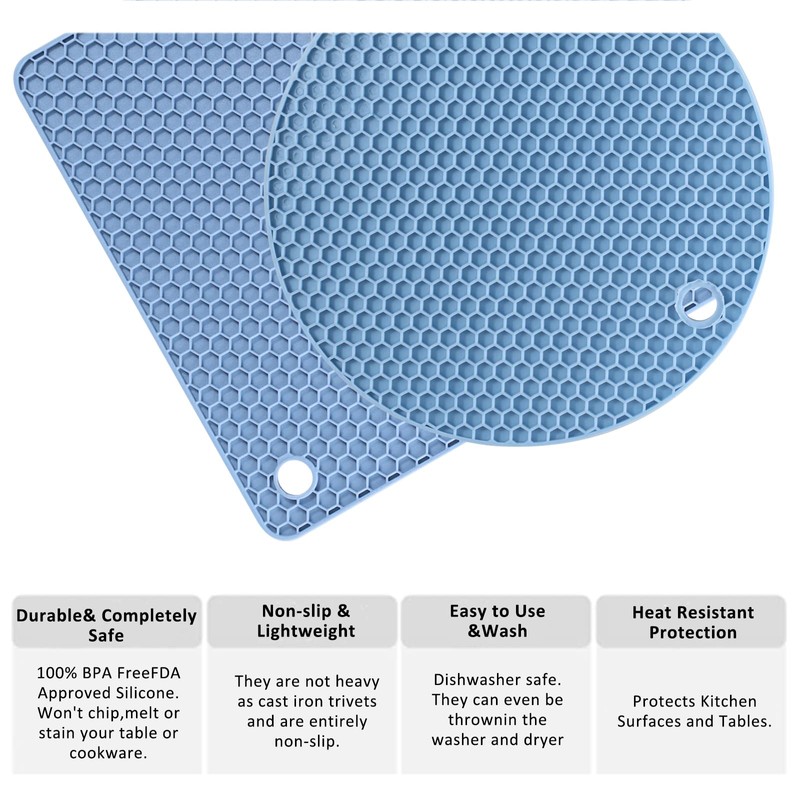 Daixers 2 Pack Silicone Trivet Mat, Hot Pads Non-slip Insulation Mats for Home Kitchen (Blue)
