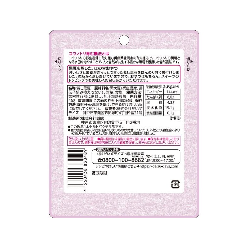 - Ingredients: Black soy (produced in Hyogo Prefecture, non-GMO), sugar, salt