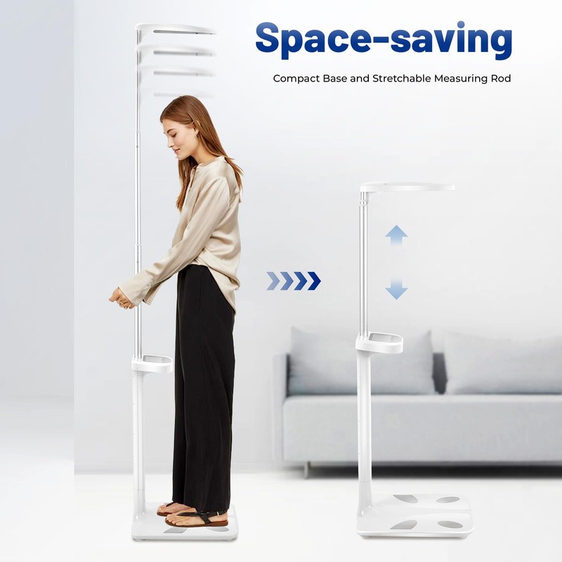 - ENJOY SMART LIFE: The Height and Weight Scale adopts ultrasonic measurement technology, which can quickly measure your height and display the current body status. In addition, it also has functions such as single-set data recording/checking, automatic zeroing, low battery/overload indication, etc. The humanized voice broadcasting function allows the elderly and children to easily master it!