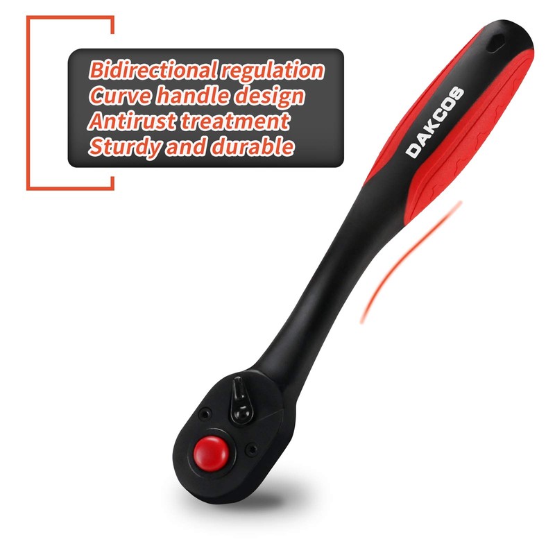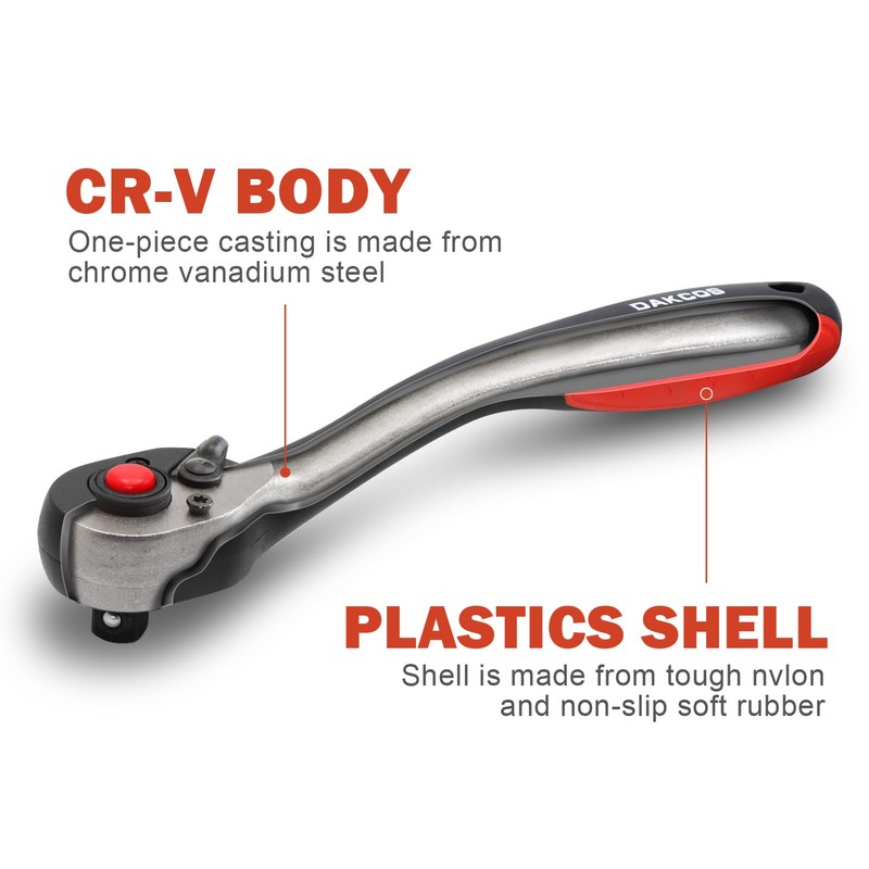 DAKCOS 3/8" Drive Ratchet 72 Teeth Quick Release Socket Wrench Handle Chrome Vanadium Steel