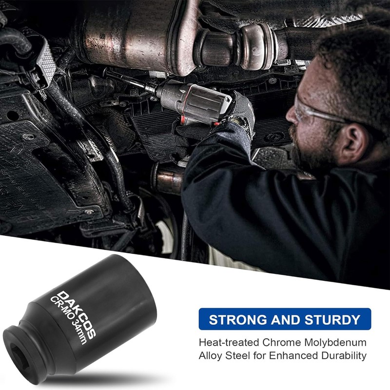 DAKCOS 34mm Socket 1/2" Drive 12 Ponit Impact Wrench Socket Drive Shaft Tool ...