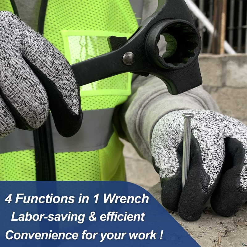 DAKCOS 4 in 1 Ratchet Podger Spanner Scaffold Spanner with Claw Hammer 17mm x 19mm (Black)