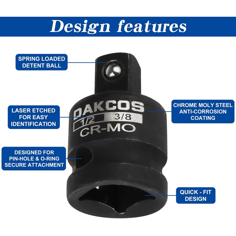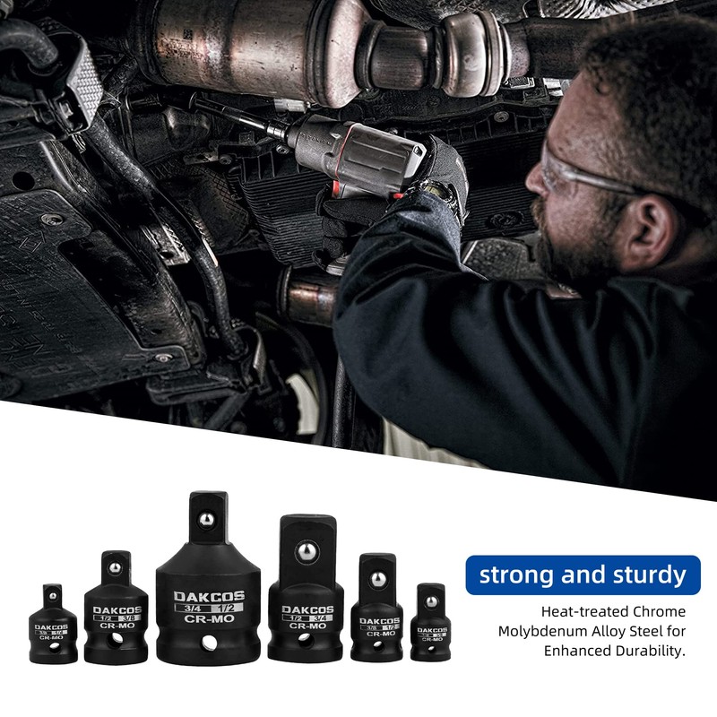 DAKCOS Power Adaptor Set Impact Wrench Adaptor | 6 Pieces | 1/4 Inch to 3/8 Inch, 3/8 Inch to 1/4 Inch, 3/8 Inch to 1/2 Inch, 1/2 Inch to 3/8 Inch, 3/4 Inch to 1/2 Inch, 1/2 Inch to 3/4 Inch, CR-MO