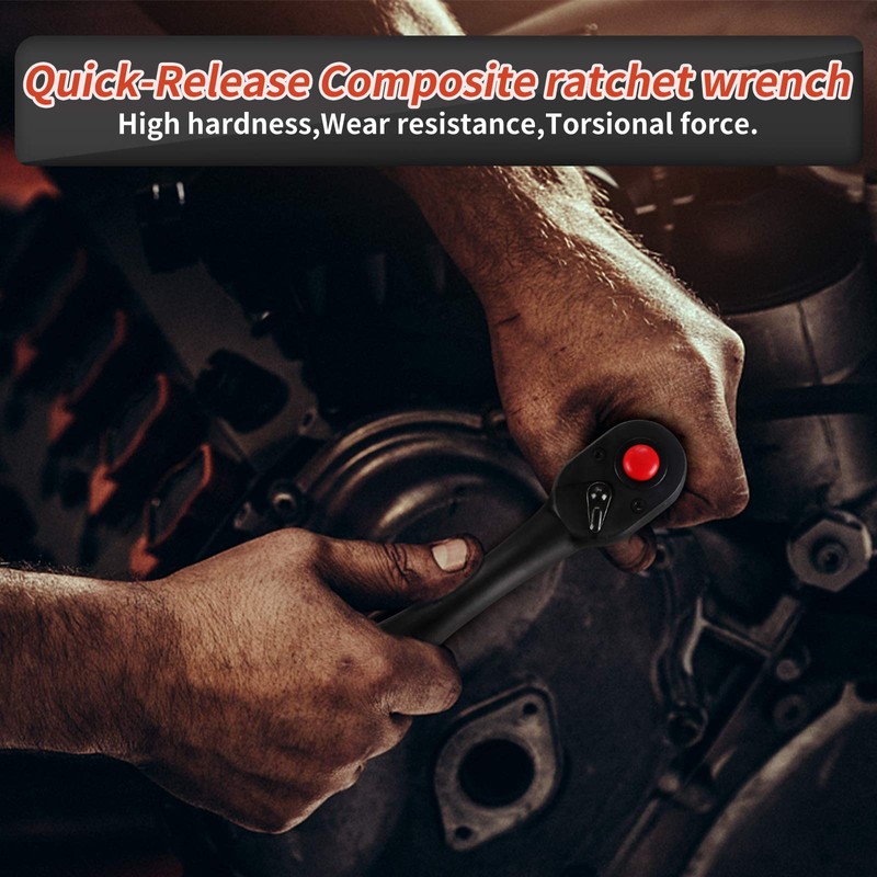 DAKCOS Socket Wrench Set 1/4" 3/8" 1/2" Drive Ratchet with Quick Release Composite Offset Handle Reversible Spanner 72 Teeth