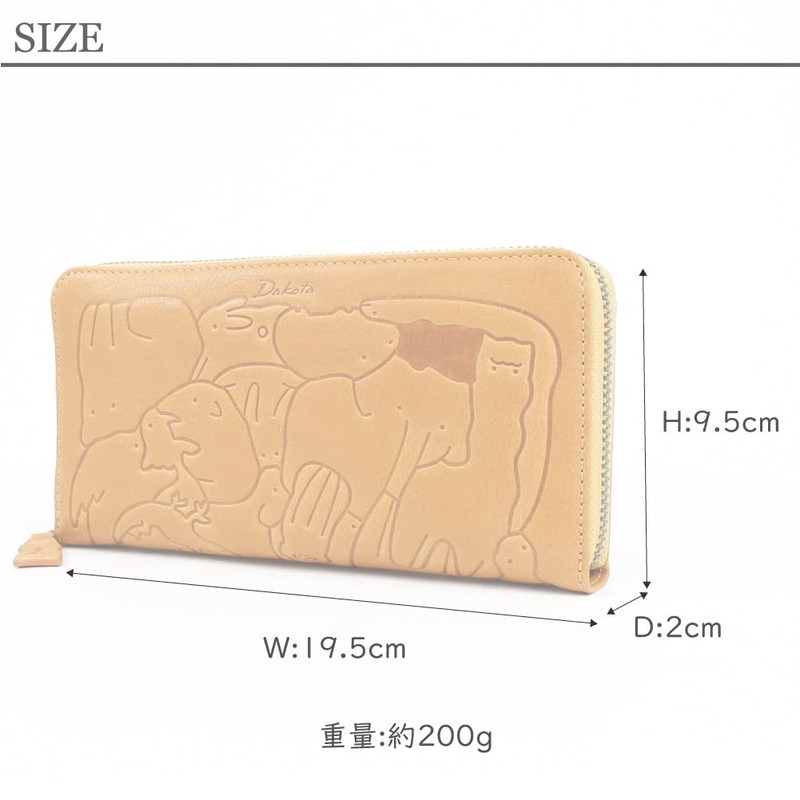 Dakota 0030192 Long Wallet, Women's, Brand, Animal, Bear, Elephant, Rabbit, Alpaca, Capybara, Dog, Koala, Tiger, Fox, Giraffe, Bird, Cat, Pattern, Round Zipper, Easy to Use, Genuine Leather, Embossed