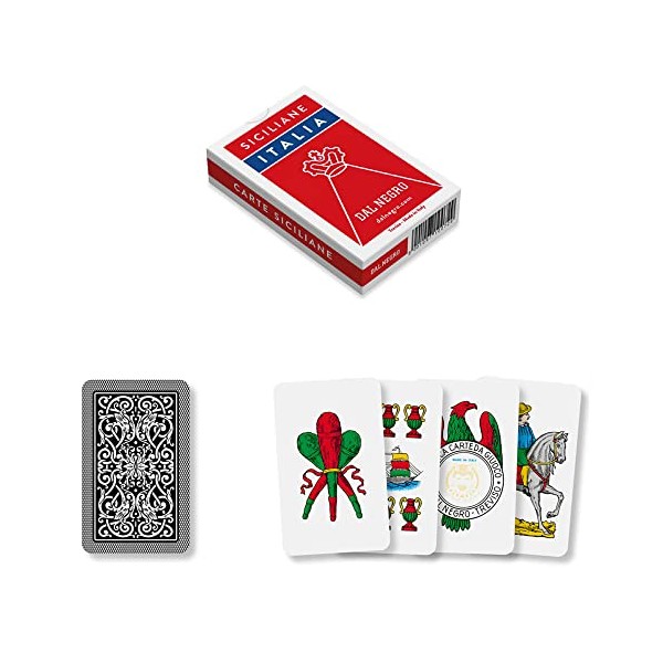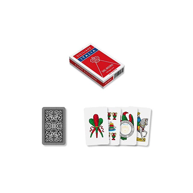 Dal - Deck of Sicilian Italy cards, consisting of 40 cards in cardboard, ideal for playing broom and trump.,Red
