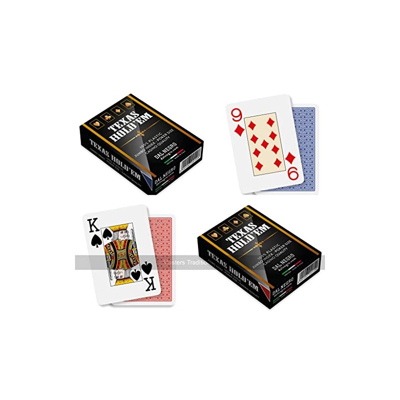 Dal Negro Texas Holdem Poker Cards (100% Plastic, 2 Decks, Red/Blue)