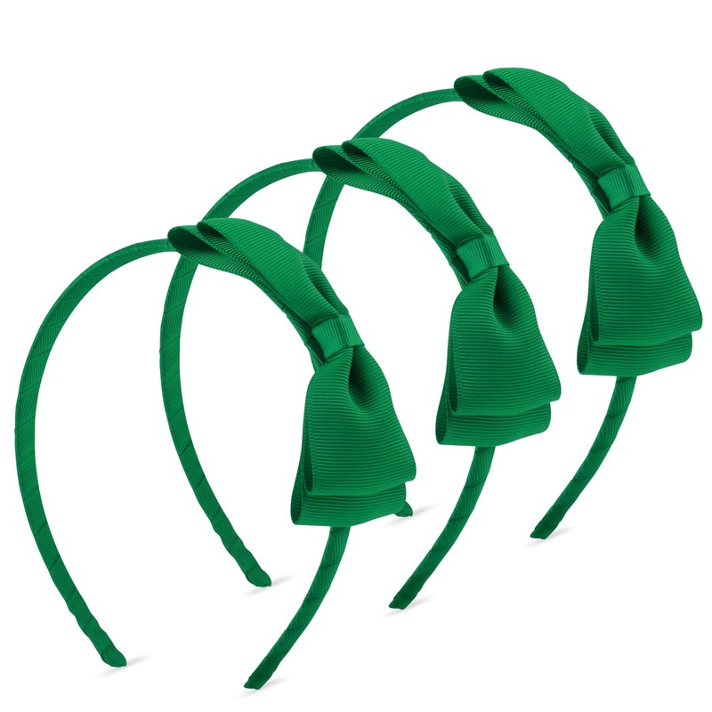 Dalababa 3 Pcs Green Hair Bows on Headbands Alice Bands, Elastic Plain Grosgrain Ribbon Hairbands, School Hair Accessories for Girls Kids Birthday Party Gift
