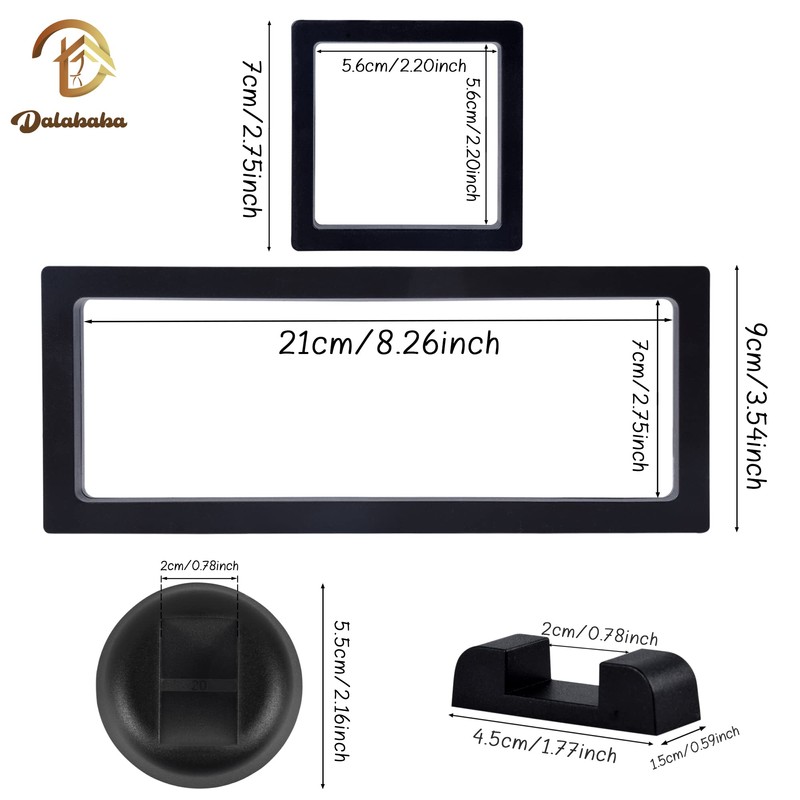 - Package includes: 2 x 23 x 9 x 2 cm floating frames, 6 pieces 7 x 7 x 2 cm floating frames, paired with 4 rectangular presentation pads and 6 round presentation pads.