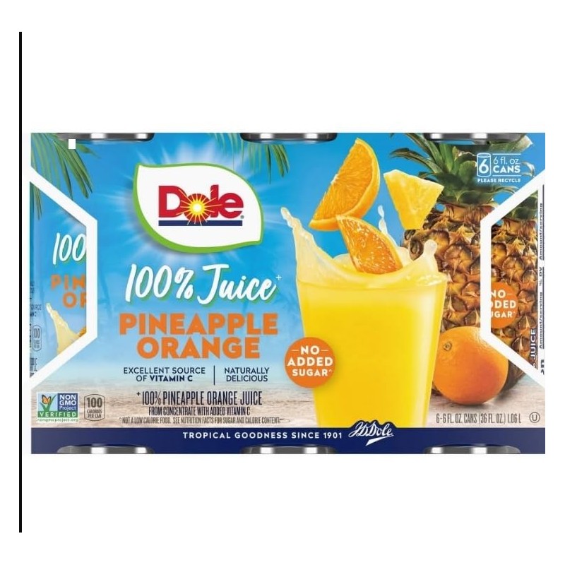 Dale All Natural 100% Pineapple Orange Juice, 6 fl oz, 6 Count Cans