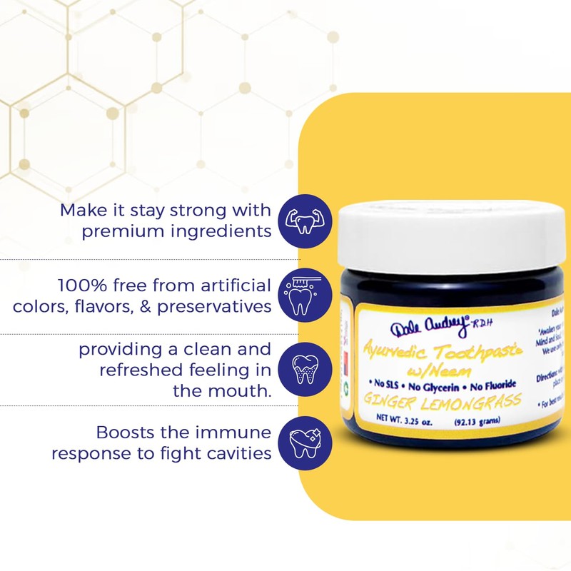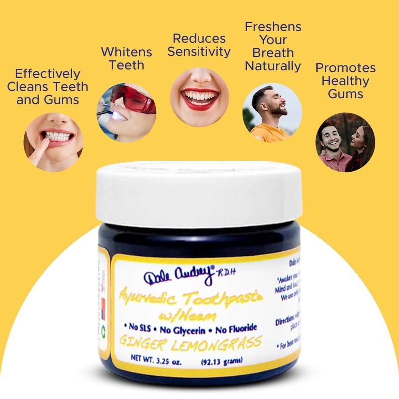 Dale Audrey Ayurvedic Mineralizing Tooth Paste for Sensitive Teeth | Organic Ginger Lemongrass Flavor Teeth Whitening and Fresh Breath | Natural Toothpaste, Vegan (3.25 Oz)