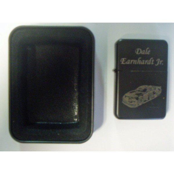 Dale Earnhardt Jr car #8 Engraved Black Plated Brass Refillable Lighter in Black tin case