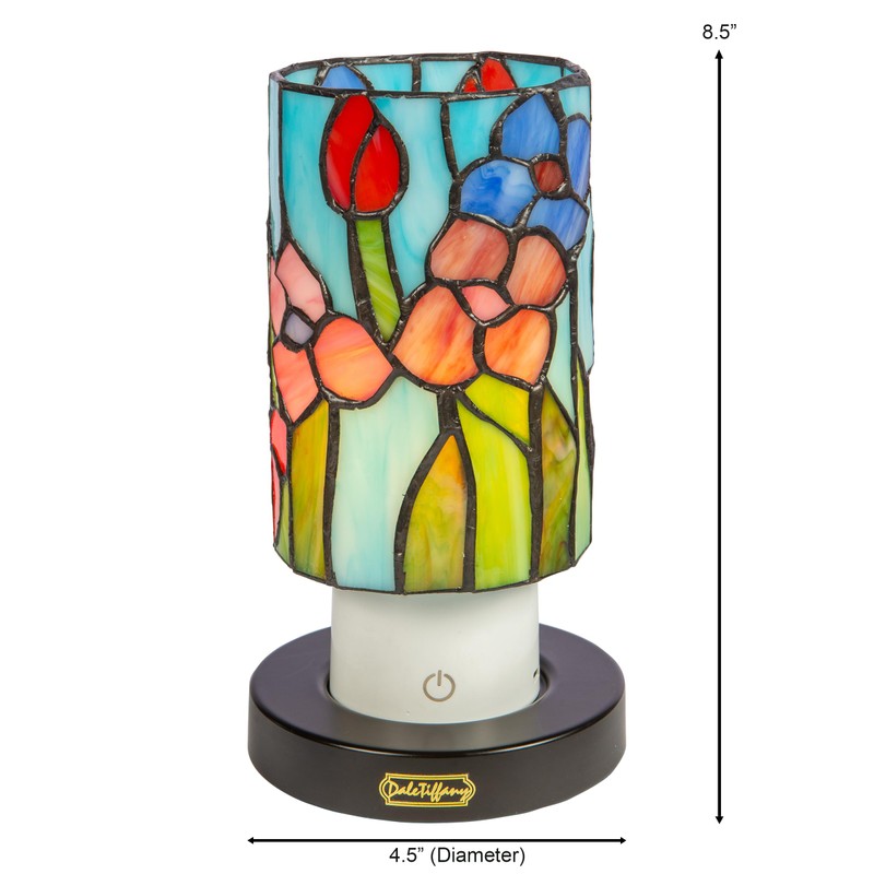 Dale Tiffany TAR24122 Sunset Peony Uplight Tiffany Accent Lamp with Built-in Rechargeable Battery and 3-Level Brightness, Multicolor, 8.5-Inch Tall