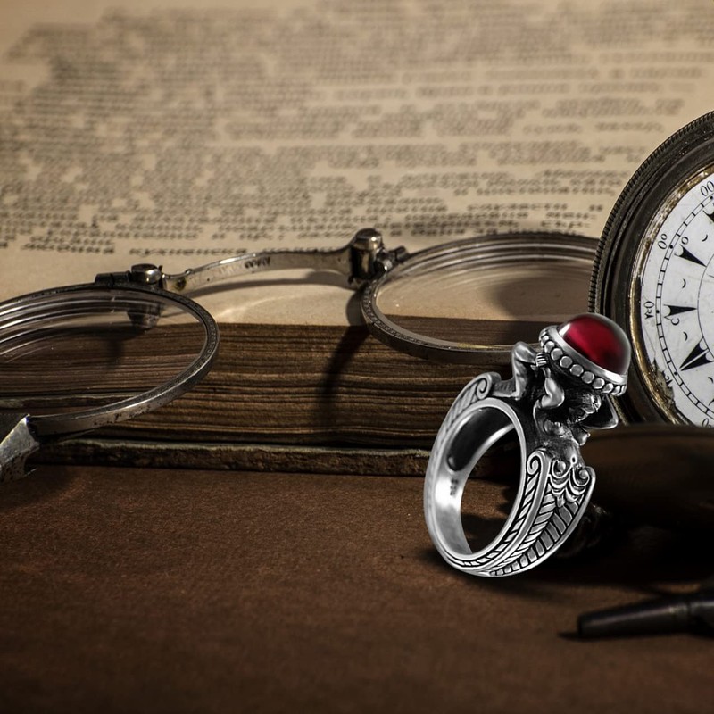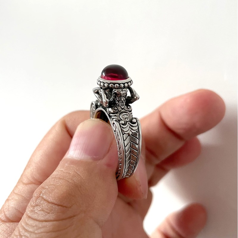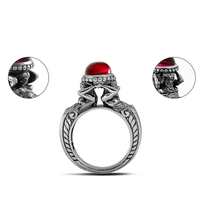DALEGEM Womens Cool Pearl/Ruby Stone Ring,Platinum Plated Real Genuine Crystal Quartz Gemstone Stone Ring Cocktail Party Jewelry (Ring_C, 8.0)