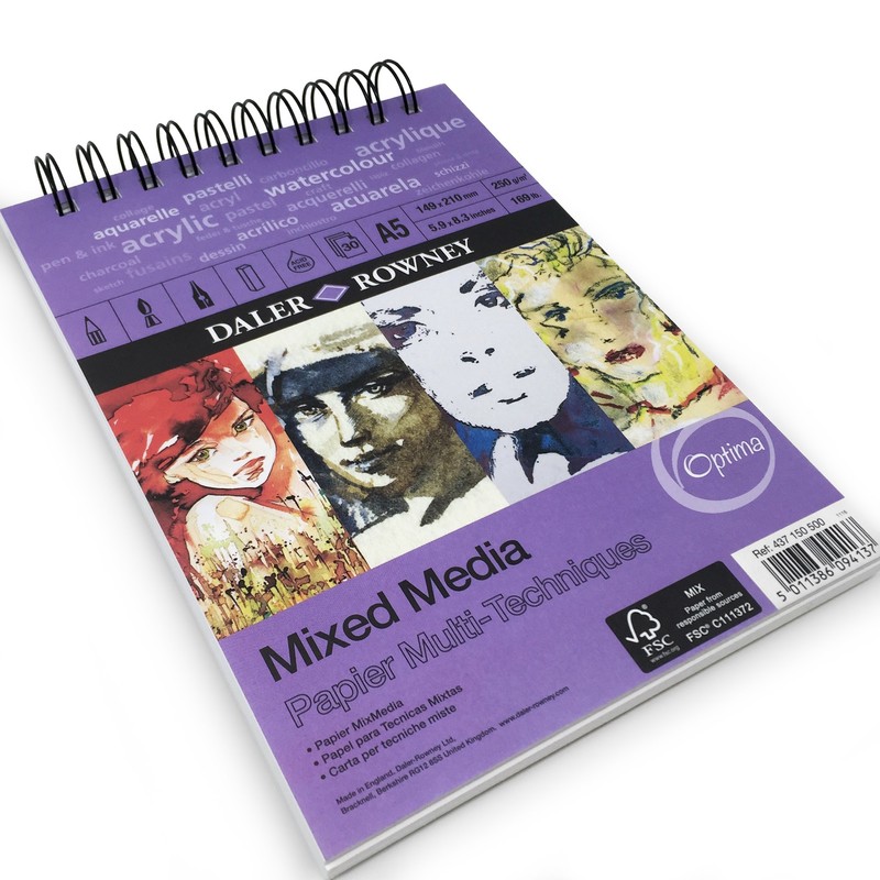 - The Optima Mixed Media paper is perfect for all your drawing techniques such as pencil, pen, ink, pastel and charcoal but is also ideally suited for works in watercolour and acrylic.