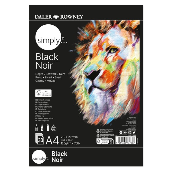 Daler-Rowney Simple Black Paper Smooth Surface 120gsm Pad Glued One Sided A4 21 x 29.7 cm 30 Sheets