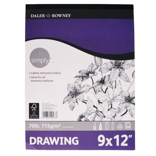 Daler-Rowney Simply Drawing Pad 9x12 inch - 40 Sheets - Tape Bound - Translucent Paper - Sketchbook for Artists and Students - Pen Marker Colored Pencil Sketching
