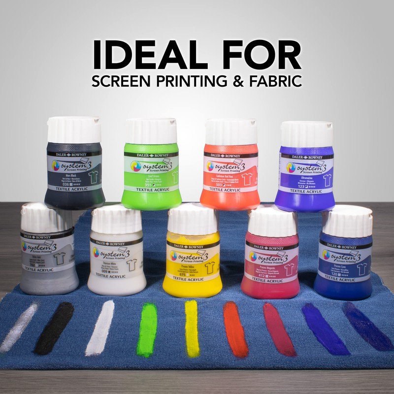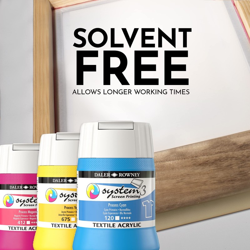 - System3 Textile Screen Printing Acrylic Inks are pigment-based textile screen printing inks with a strong clear colour definition