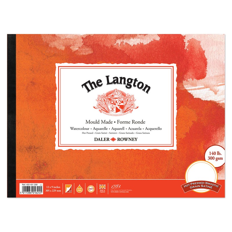 Daler Rowney Watercolour Pad - The Langton - Hot Pressed (Smooth Grain) Paper - 12 Sheets - 12 x 9 in - 30.5 x 22.9 cm - Acid Free - 140 lb - 300 gsm