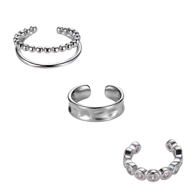 DALISITO Ear Cuffs, Fake Earrings, For Single Ear, Cartilage, Pinching, No Piercing Required, Simple, Silver, Set of 4