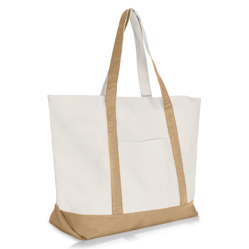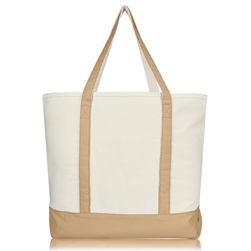 DALIX 22" Large Cotton Canvas Zippered Shopping Tote Grocery Bag in Brown