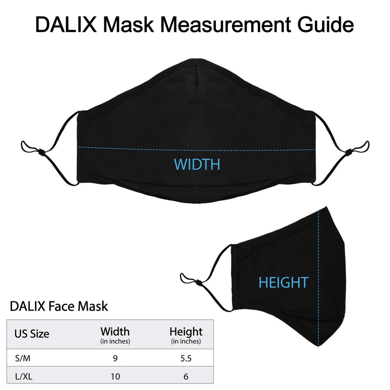 DALIX 3 Layer Cloth Face Mask Filter Pocket Adjustable Nose Ear Loops Black S-M