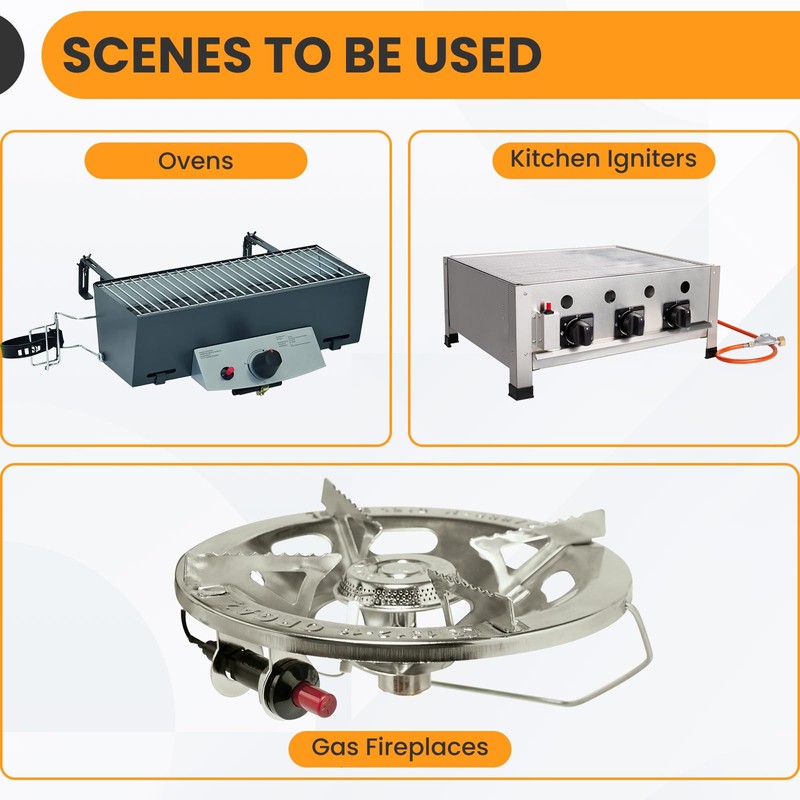 - 𝐖𝐢𝐝𝐞 𝐀𝐩𝐩𝐥𝐢𝐜𝐚𝐛𝐥𝐞: Grill igniter has a wide range of compatibility. It can be used for gas stoves/ovens, fireplaces, patio heaters, wall-mounted gas boilers, or as replacement parts for outdoor barbecues