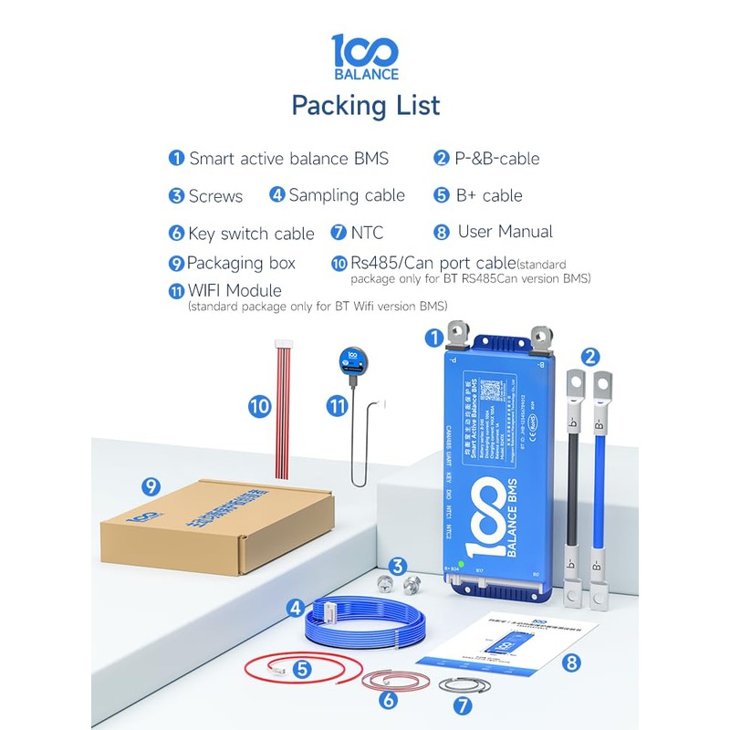 - 3 - year Warranty. Packing List: 150amp Smart BMS * 1, Sampling Cable * 1, P - & B - Cable * 1, B + cable * 1, NTC * 1, Screw * 2, Operation manual * 1. Easy to install. Everything you need for setup and operation.